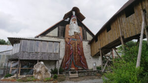 Třetím unikátem je považován obří dřevěný obraz Děda Praděda a jeho říše, který původně stál v kamenné rozhledně na vrcholku Pradědu. Ta byla i s obrazem zničena. Obraz je vyřezán ze čtyřiadvaceti lipových kmenů, měří 2,2 m x 5,5 m a naleznete ho v jedné ze zastřešených částí expozice.